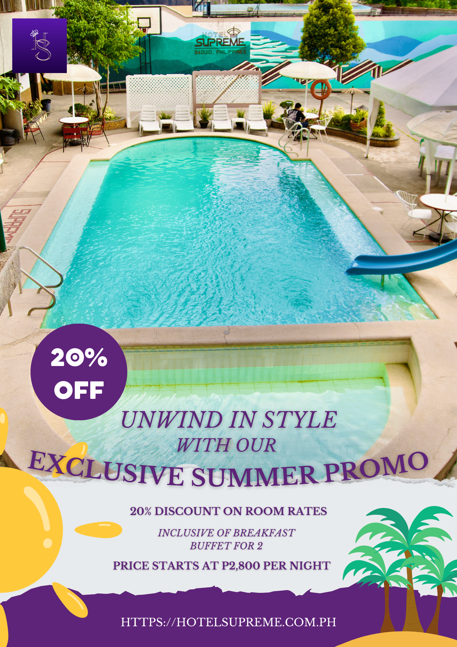Recharge, refresh, and embark on a summer retreat at Hotel Supreme with our summer promotion. Enjoy exclusive discounts on room rates and exciting amenities with promising experiences that capture the essence of the season.